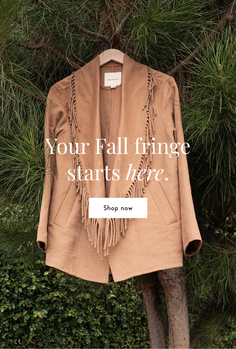 Fall’s favorite detail has arrived — and it’s all about movement. Fringe adds just the right touch this season — a nod to the classic with a modern twist.