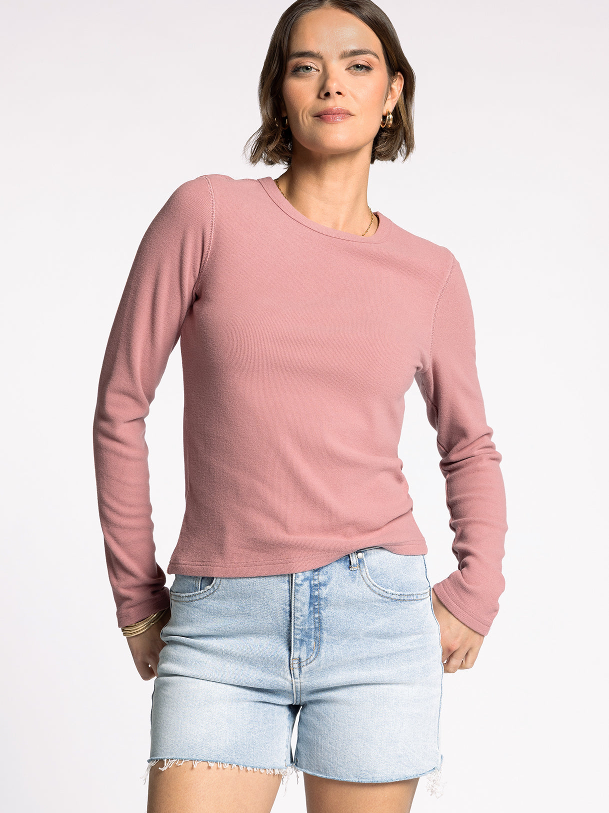 Long sleeve perfection, this wardrobe must have is featured in a super soft fabrication, relaxed fit and classic crew neck.
