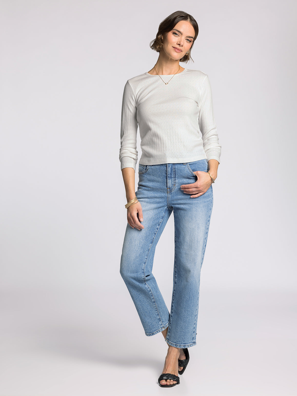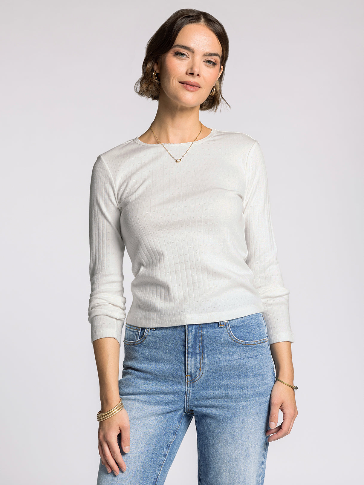 Your favorite effortless silhouette, now in a soft pointelle fabric with a crew neckline and relaxed fit.