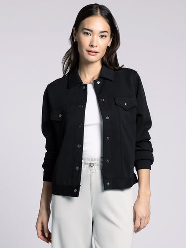 Outerwear but make it as soft as your favorite tee, this jacket is featured in our super soft scuba fabric with a relaxed fit and snap button front closure.