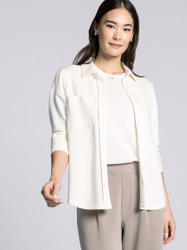 Not your average button up, this one feels like a soft sweatshirt! Featured in our super comfy scuba fabric with a button front closure and dual patch pockets. Wear with our Mildred Pant to complete the matching set.
