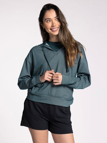 Ultra-comfy, this hoodie features adjustable drawstrings and drop-shoulder sleeves with banded hemlines and pouch pocket.