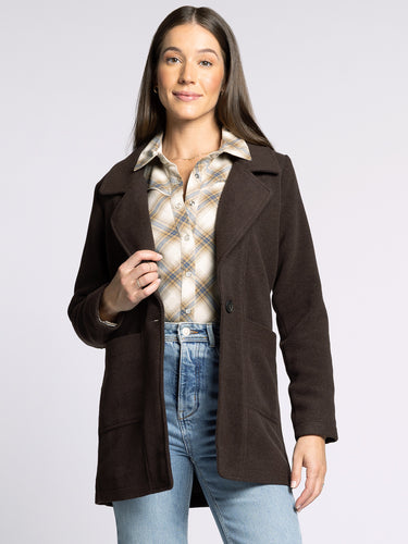 The perfect blend of cool and classic, this effortlessly essential coat is featured in a staple brushed fabrication and relaxed fit with defined collar detailing for added shape.