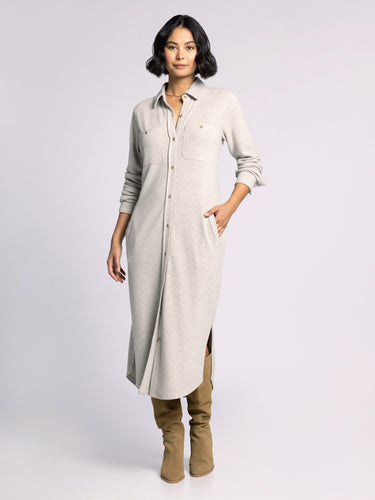 Perfect in plaid, this classic dress is featured in a timeless t-shirt silhouette with button front closure, side slits and dual side pockets.
