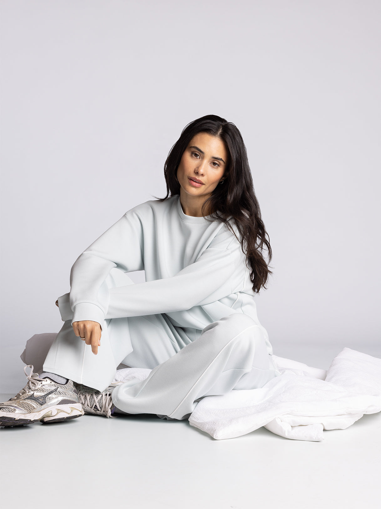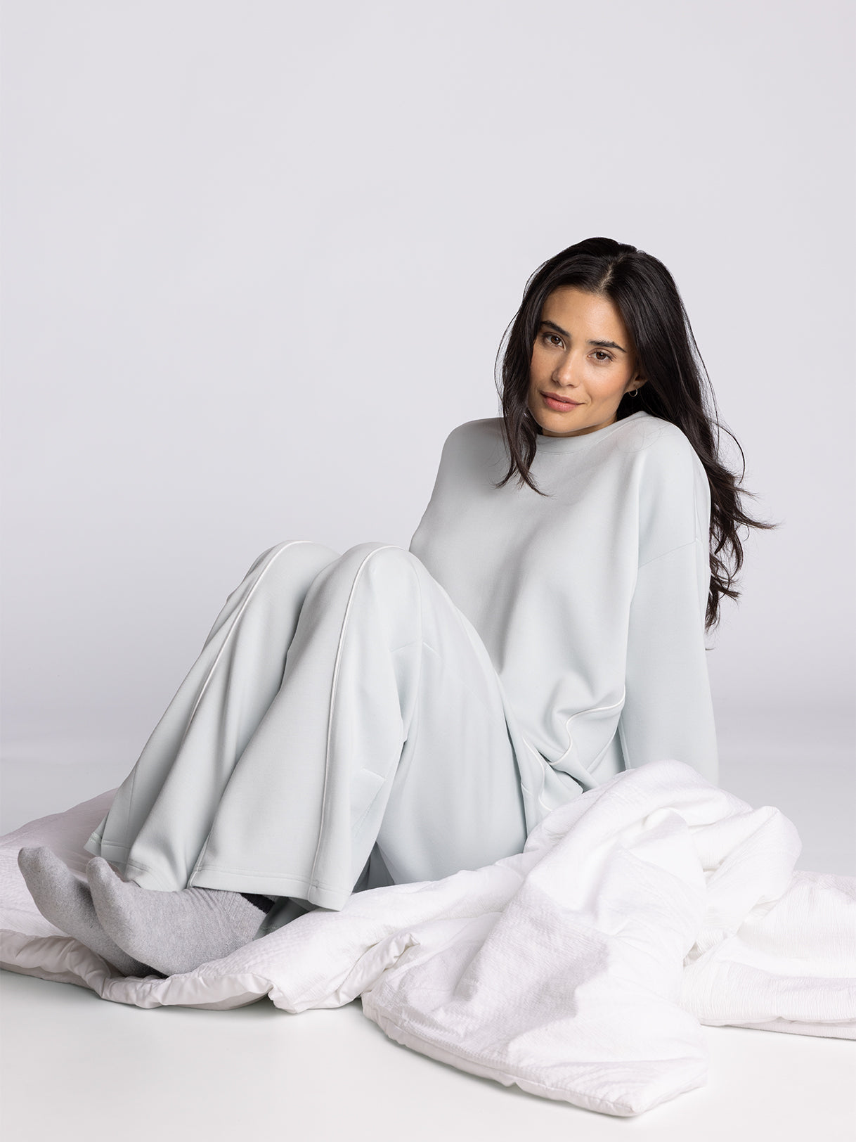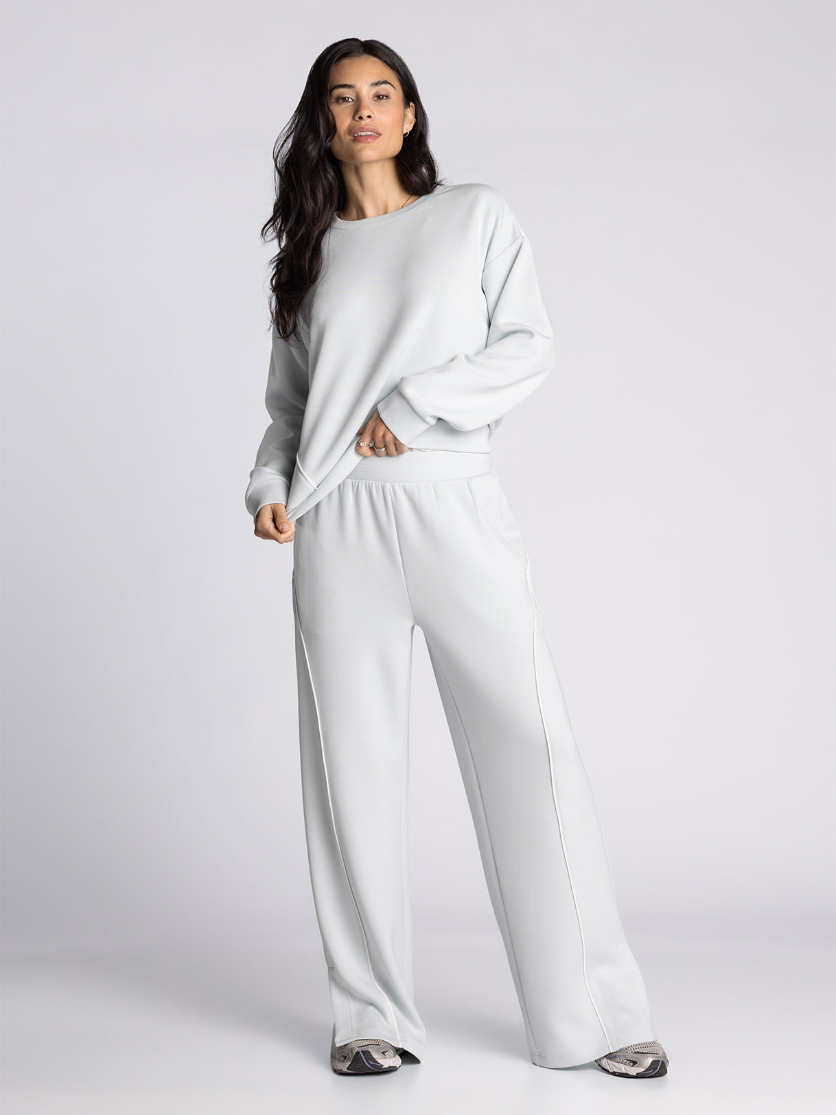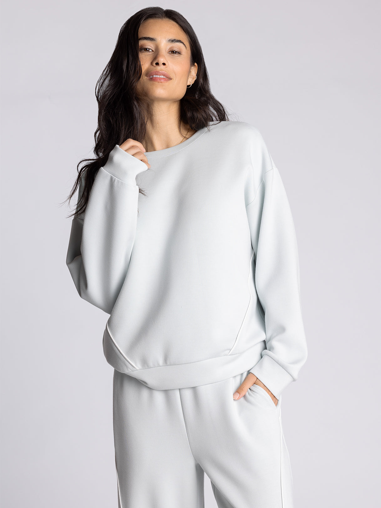 Made for easy layering, this buttery soft top is the perfect throw-on for casual comfort. Featured with contrast piping details for a sporty touch and drop shoulder for a relaxed fit. Make it a set with the Britney Pant.