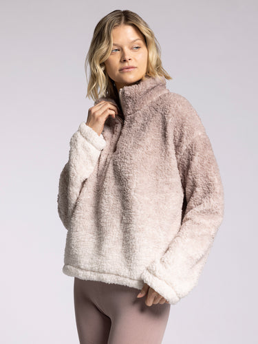 Our coziest pullover in the softest sherpa fabric, featured in a pullover design, mock neckline and dual side pockets.