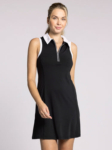 This flattering chic and sporty dress is featured in a so-soft, fabrication and classic pull-on style with a half zip front detail and collared neckline.