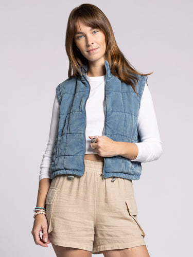 Effortlessly cool from our spring collection, this quilted vest is featured in our soft and sustainable Lyocell fabrication, relaxed fit with a mock neck and zip-front closure.