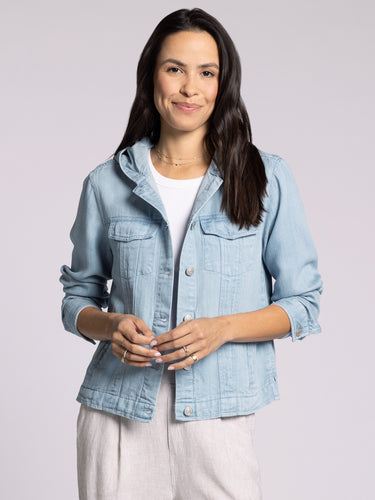 Our fan favorite Jackie Jacket now with an added hood. Made with our super soft Tencel Lyocell, this classic denim jacket is a wardrobe staple!