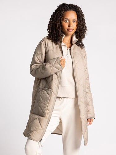 Puffed to perfection, this multi functional jacket is featured in a quilted fabrication and knee-length silhouette with dual side pockets and reversible design.