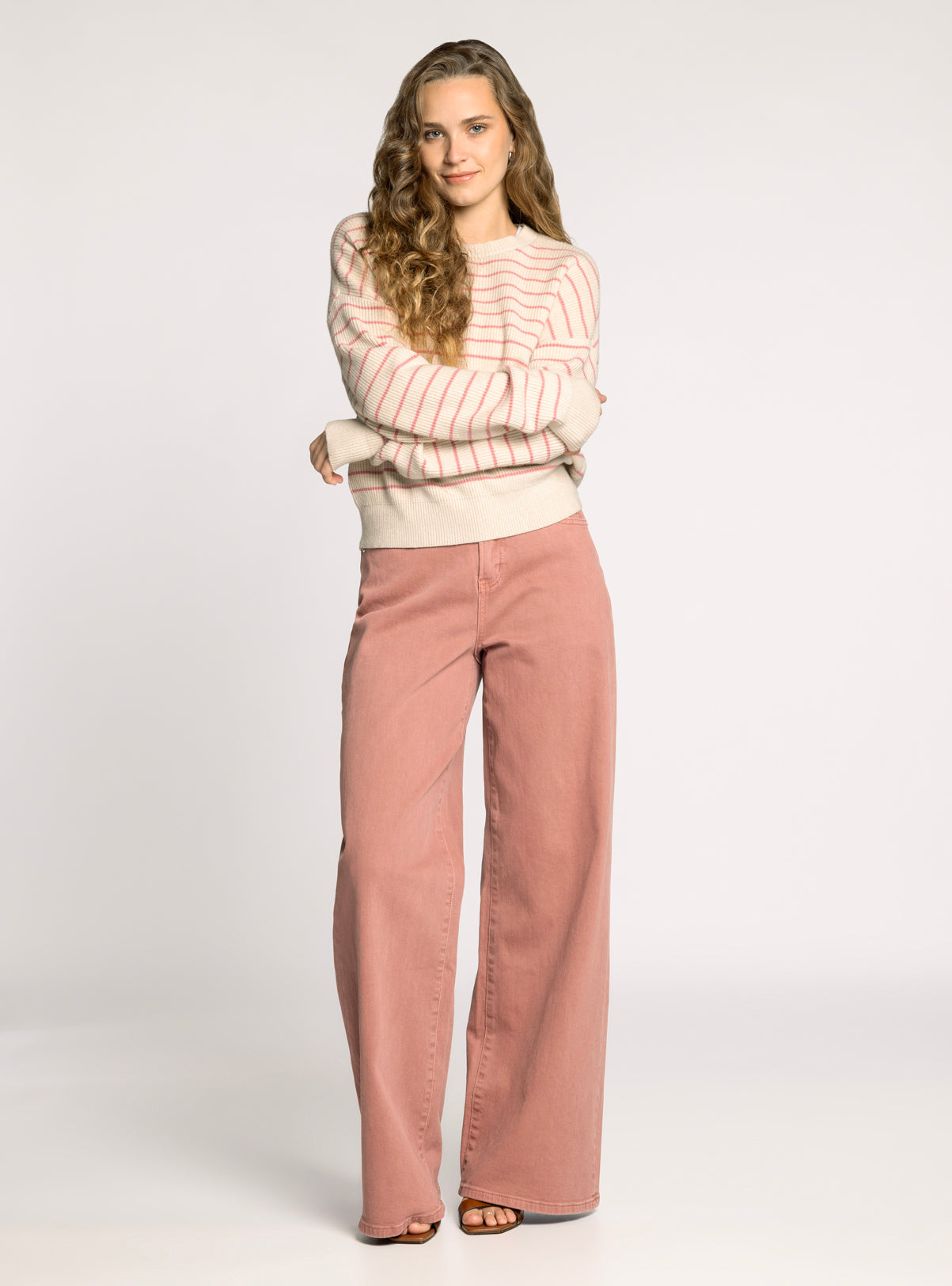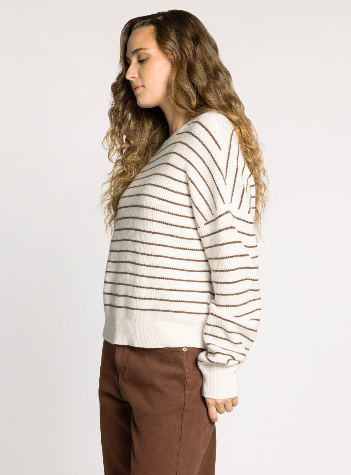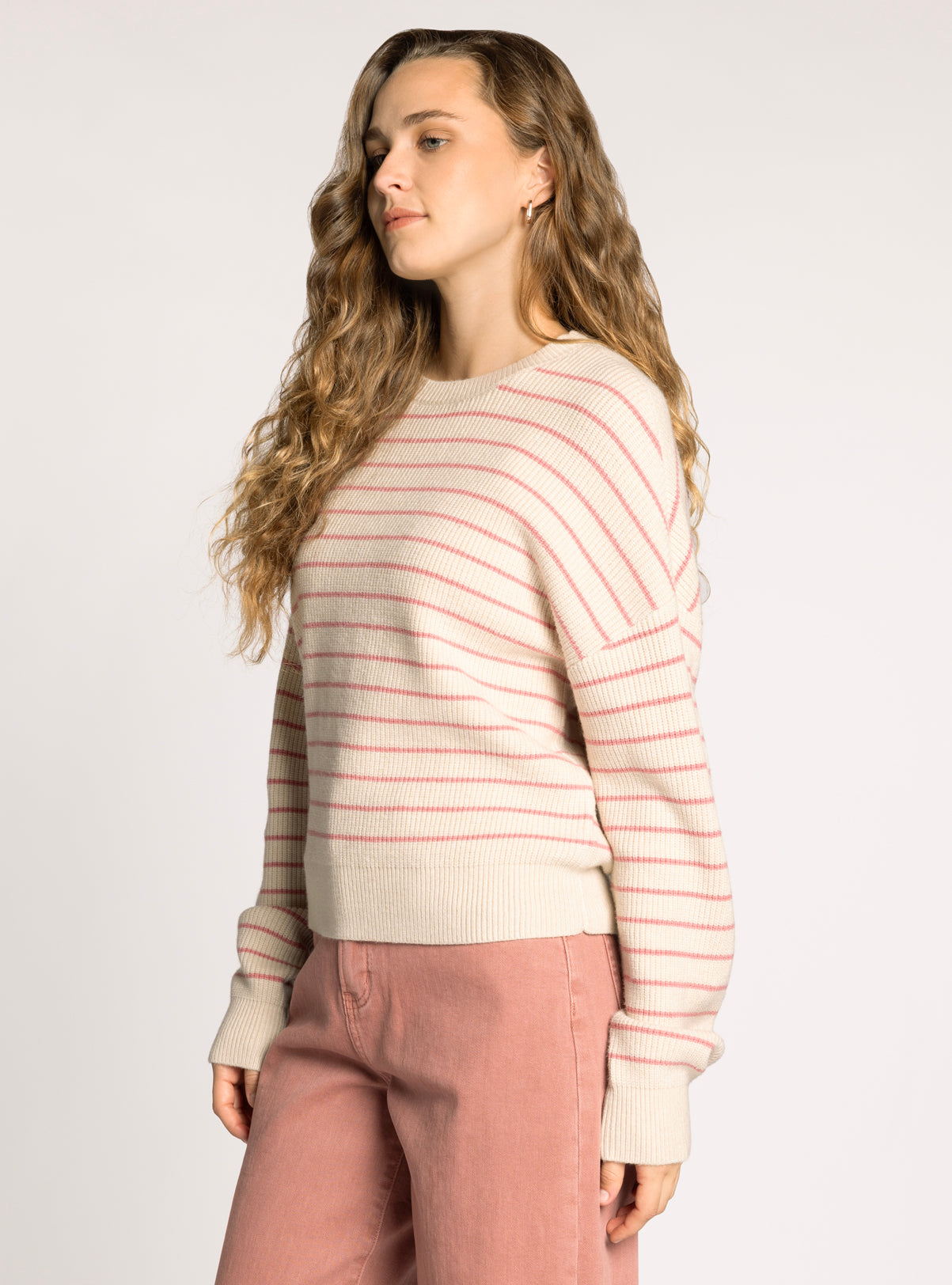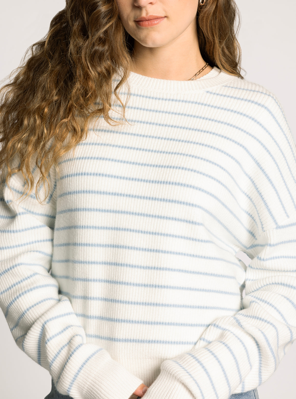So cool and classic, this forever comfy sweater is featured in a ribbed knit fabrication with crew neckline, drop shoulder silhouette, and relaxed fit.