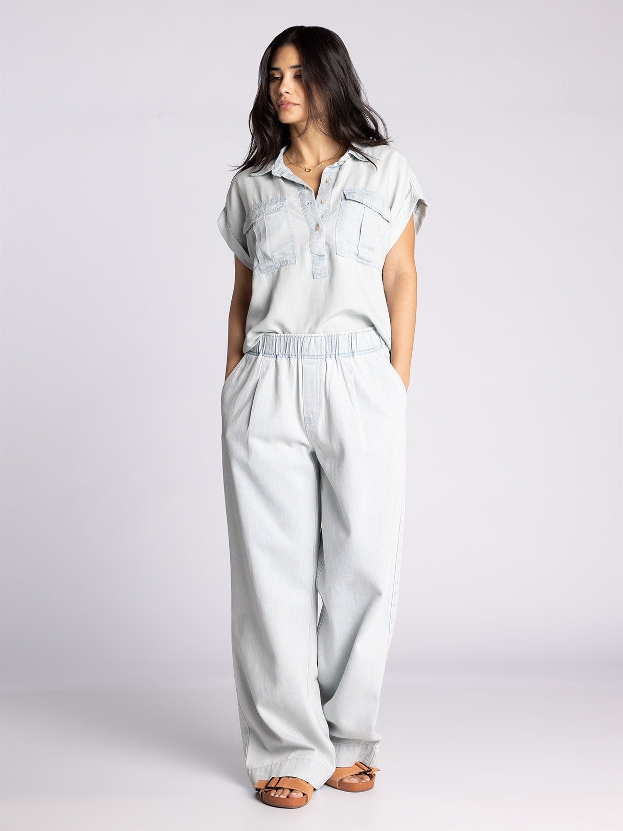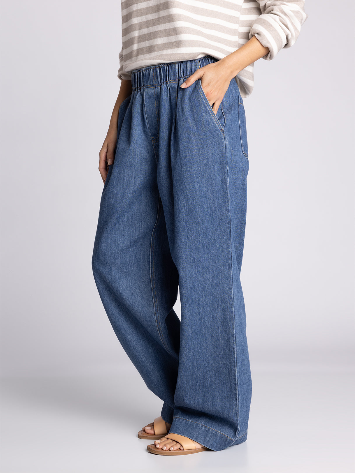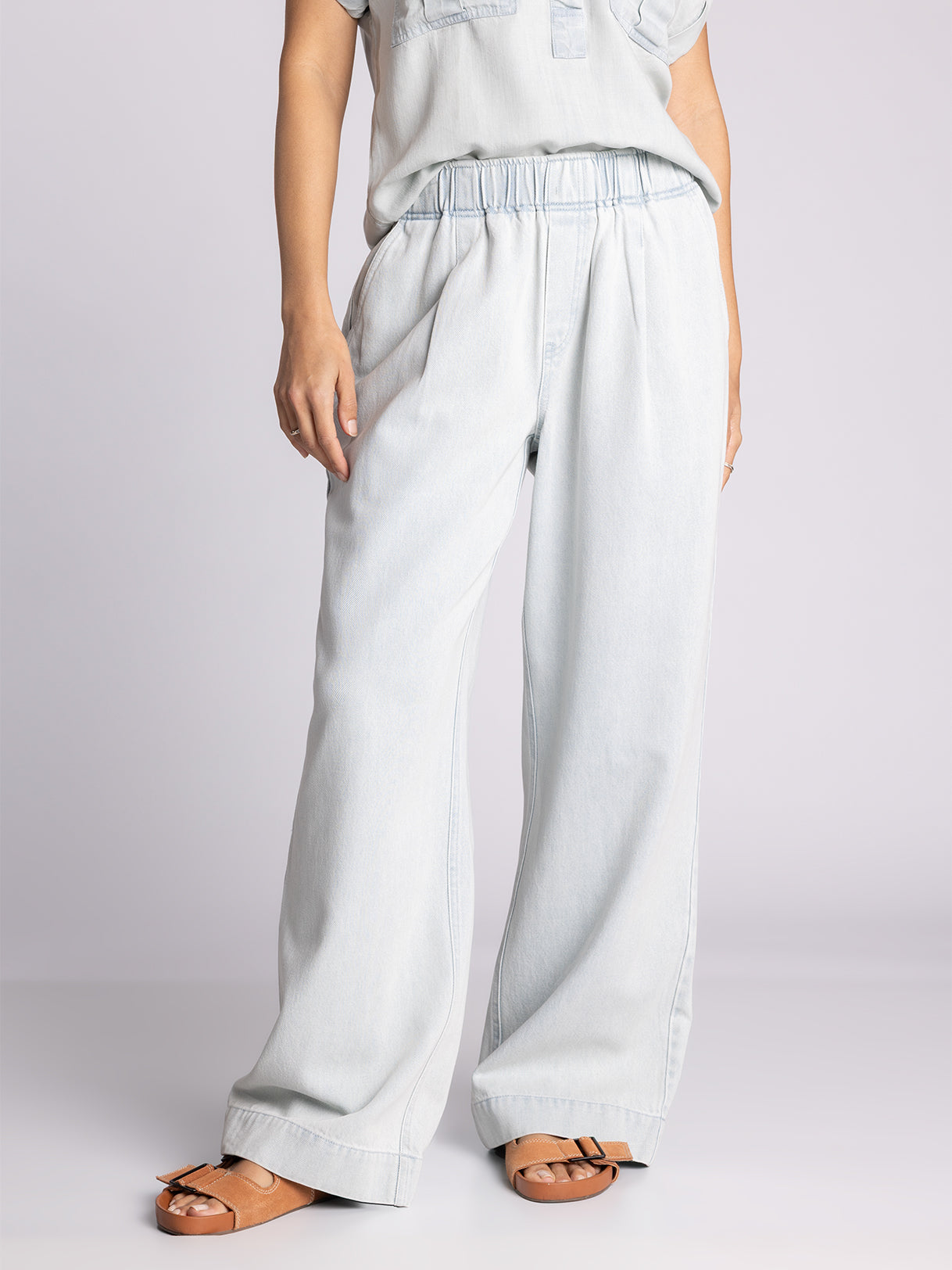 Statement meets staple with these jeans, featured in a classic wide leg silhouette for the perfect baggy look with a pull on waist and pleated details.