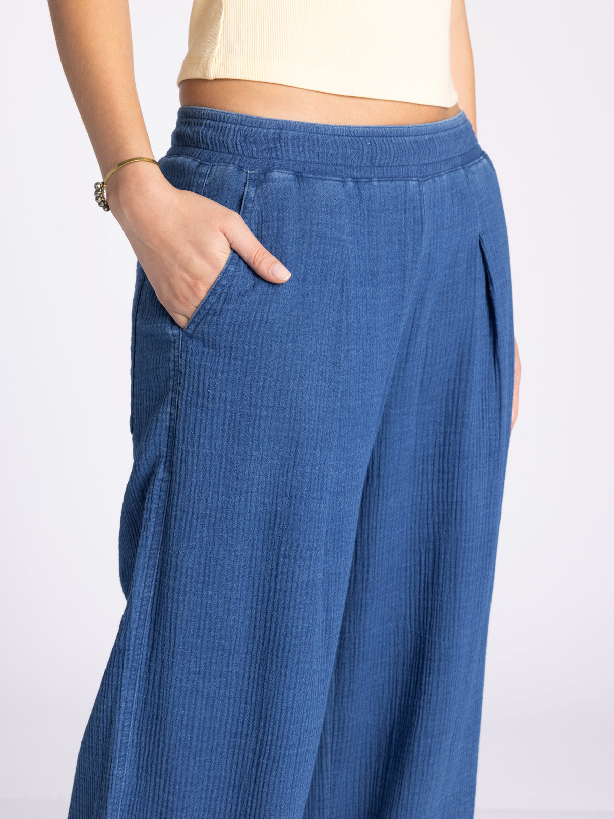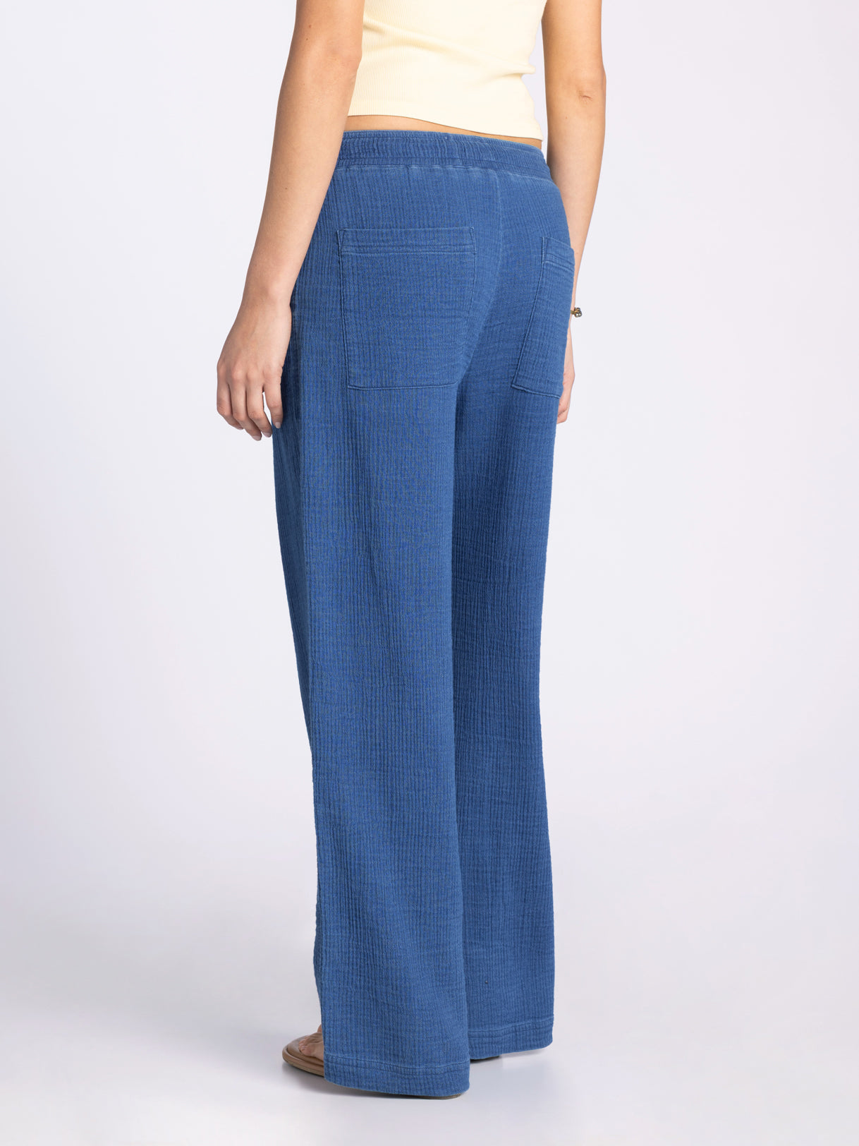 Kick back in these comfy pants, featured in a mid-rise, wide-leg style and breezy cotton gauze fabrication for a pair made for chill moments and more.