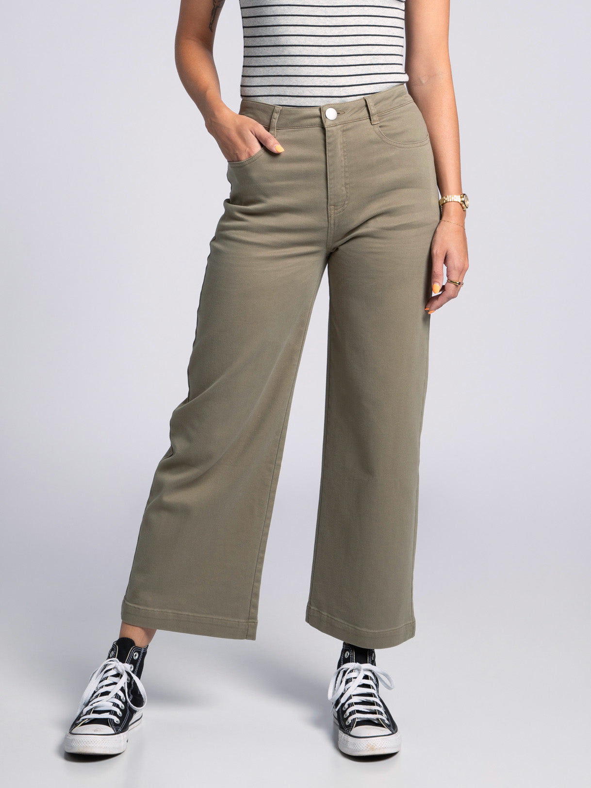 Forever cool and classic, these totally timeless pants are featured in a high-rise, wide-leg style cropped just above the ankle.