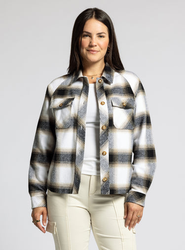 Crafted in our softest 100% cotton fabrication, this plaid layer is complete with all the classic details like dual check pockets, button front closure and collared neckline.