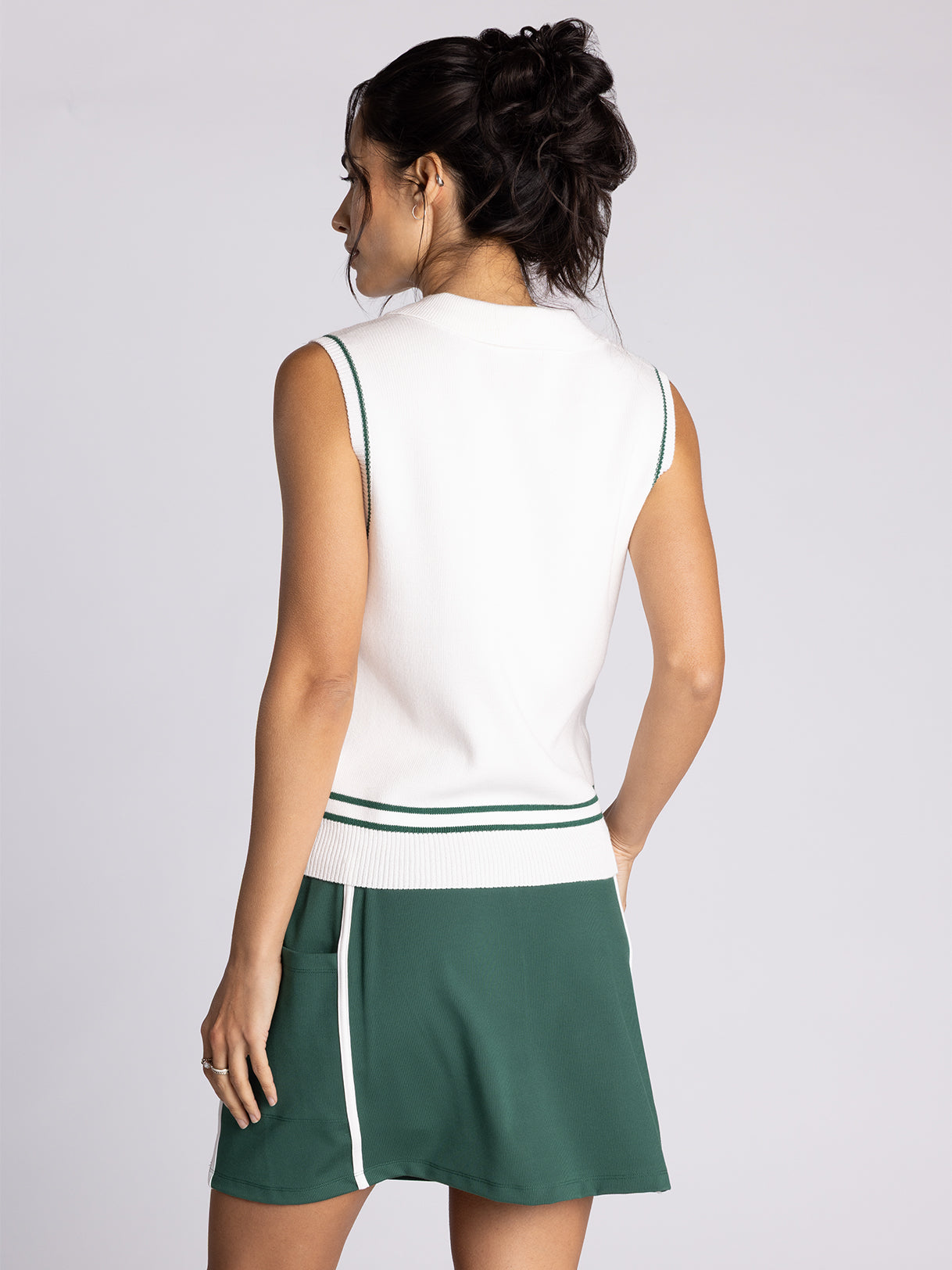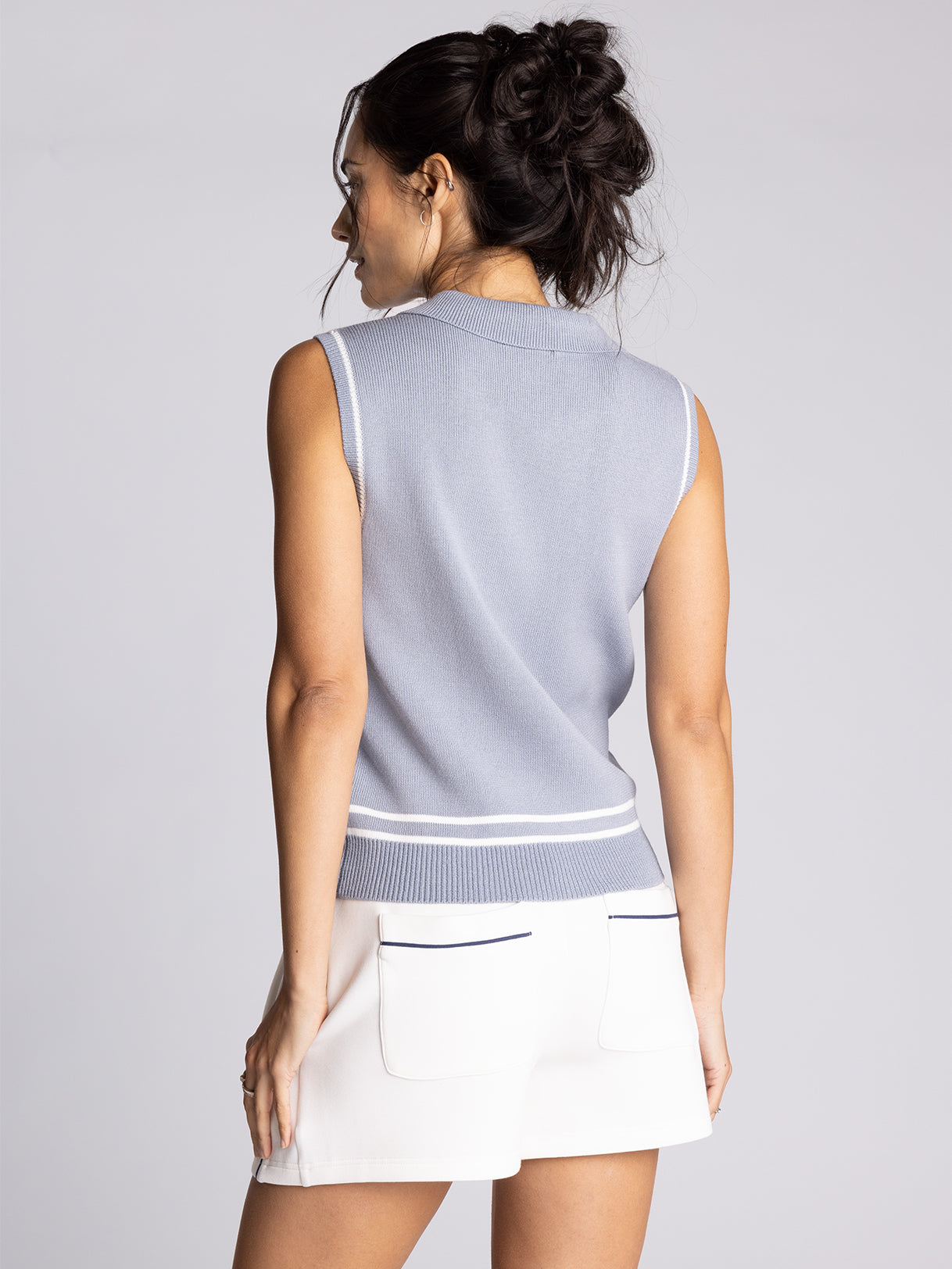 So cool and sporty, this forever classic tank is featured in a relaxed fit with classic collar and sporty striping at hem lines for the perfect finishing touch.