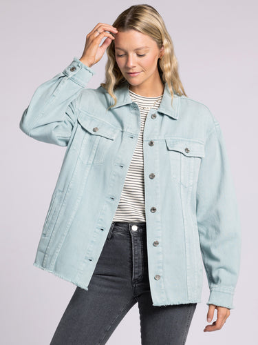 Take your denim jacket game to the next level with this so cool version featuring dropped shoulders for shape, dual side and patch pockets and a frayed hem finish for that lived in look.