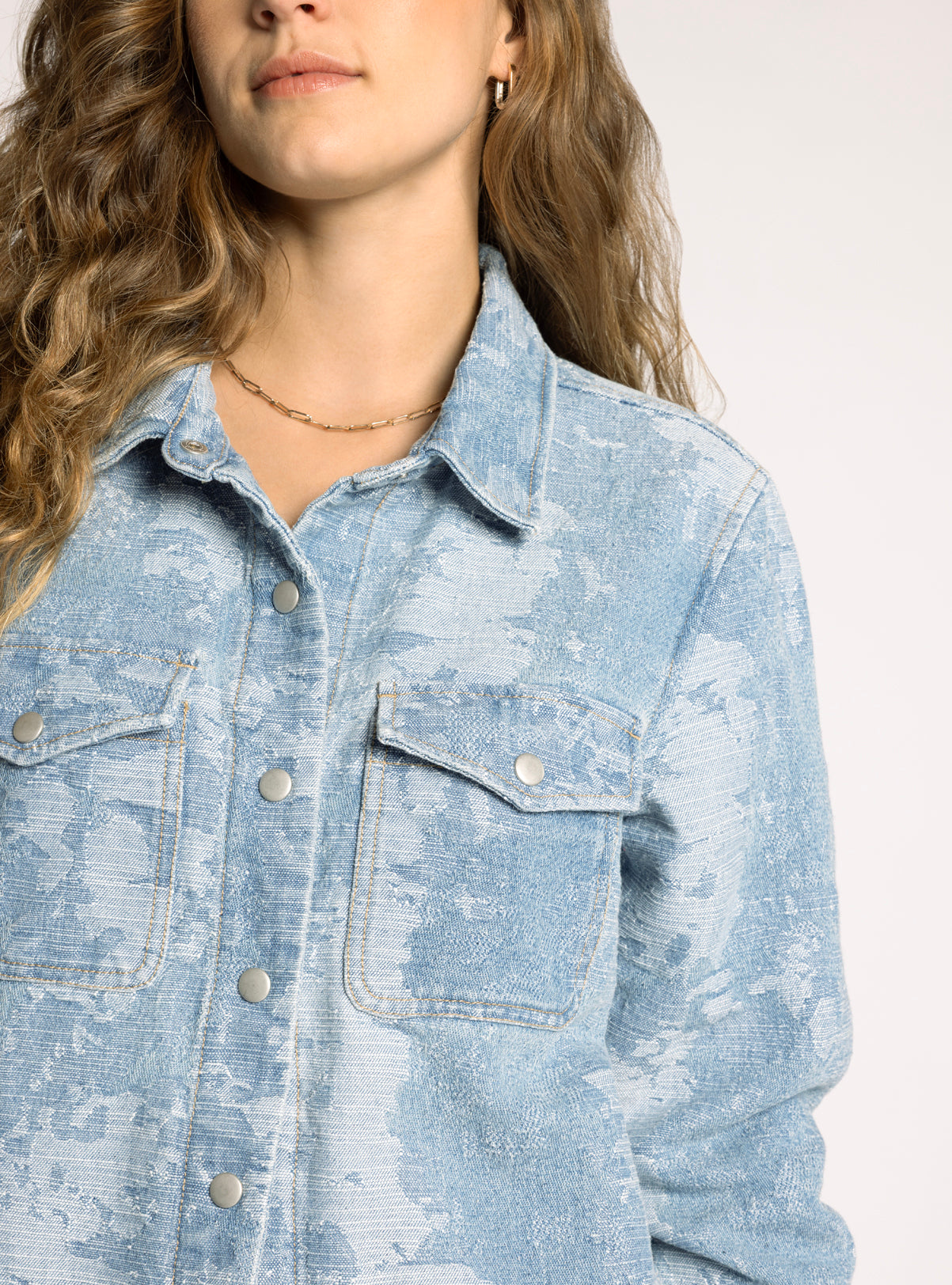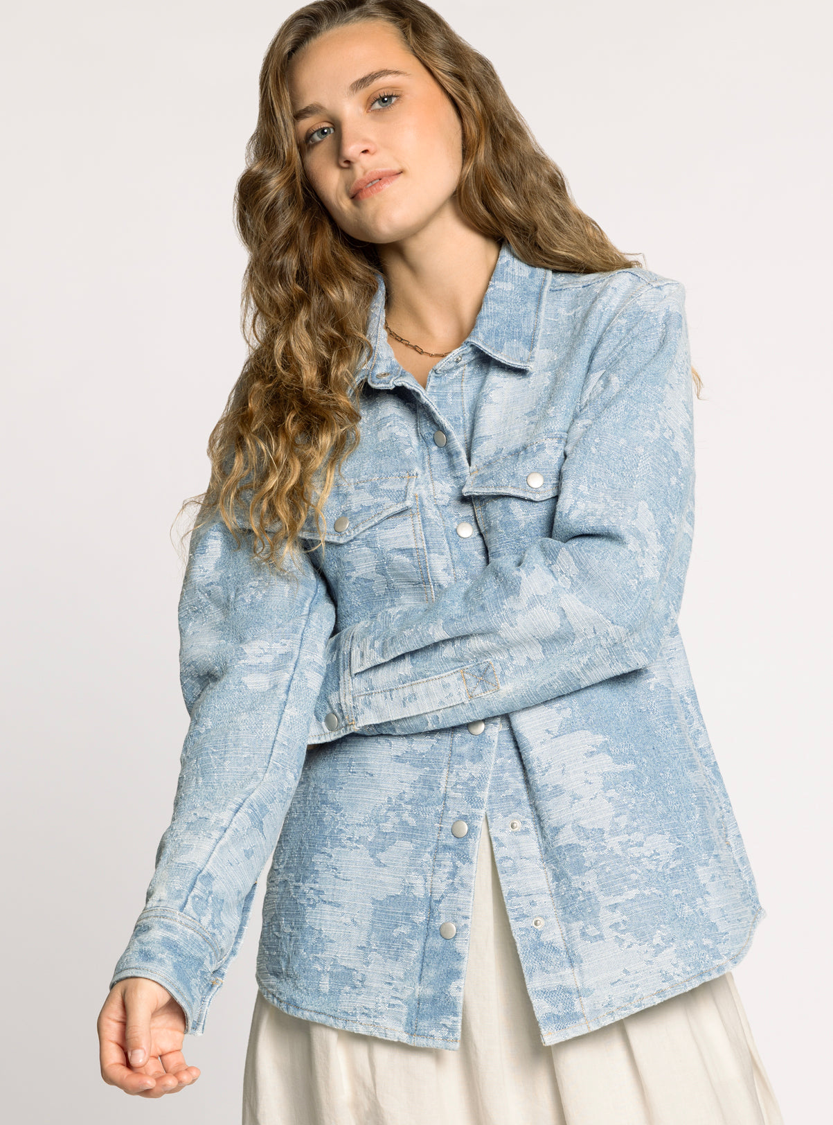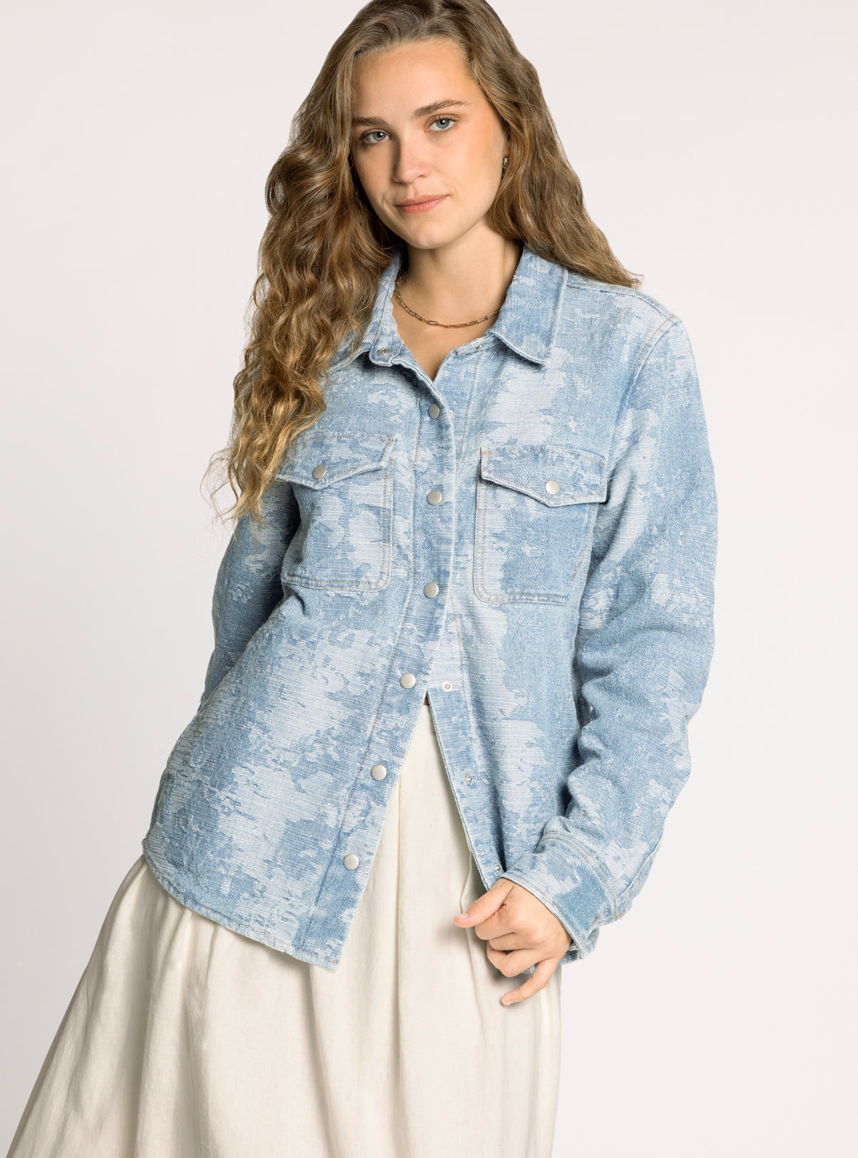 Upgrade your denim jacket collection with this so cool version, featuring a printed burnout design with snap front closure and dual chest pockets.
