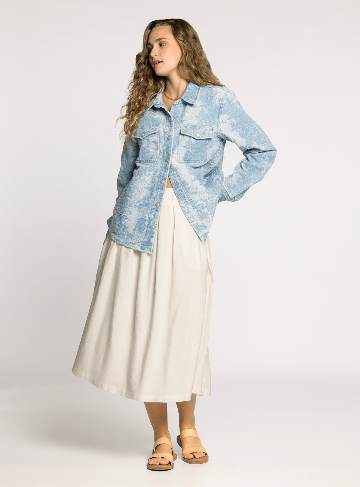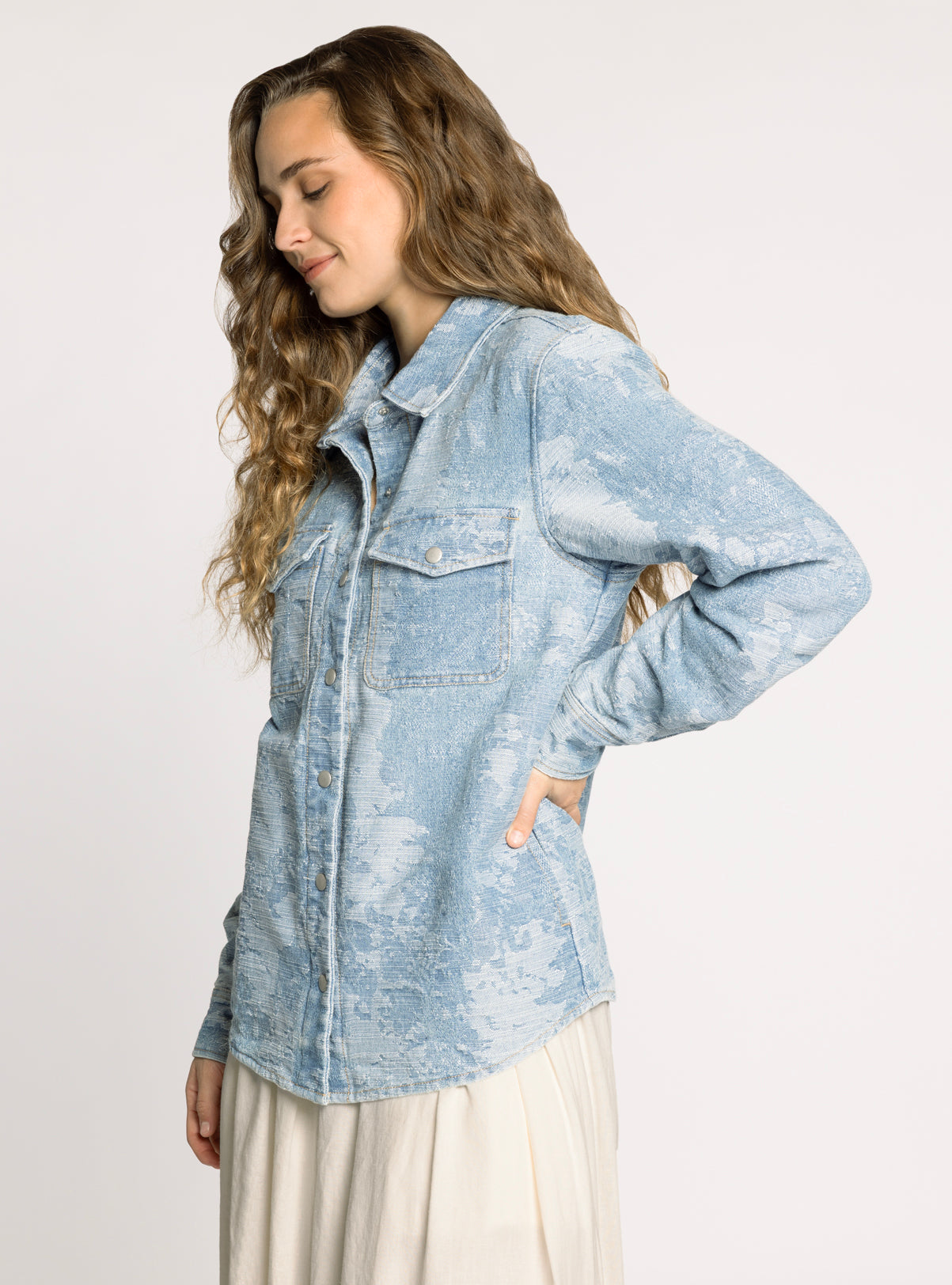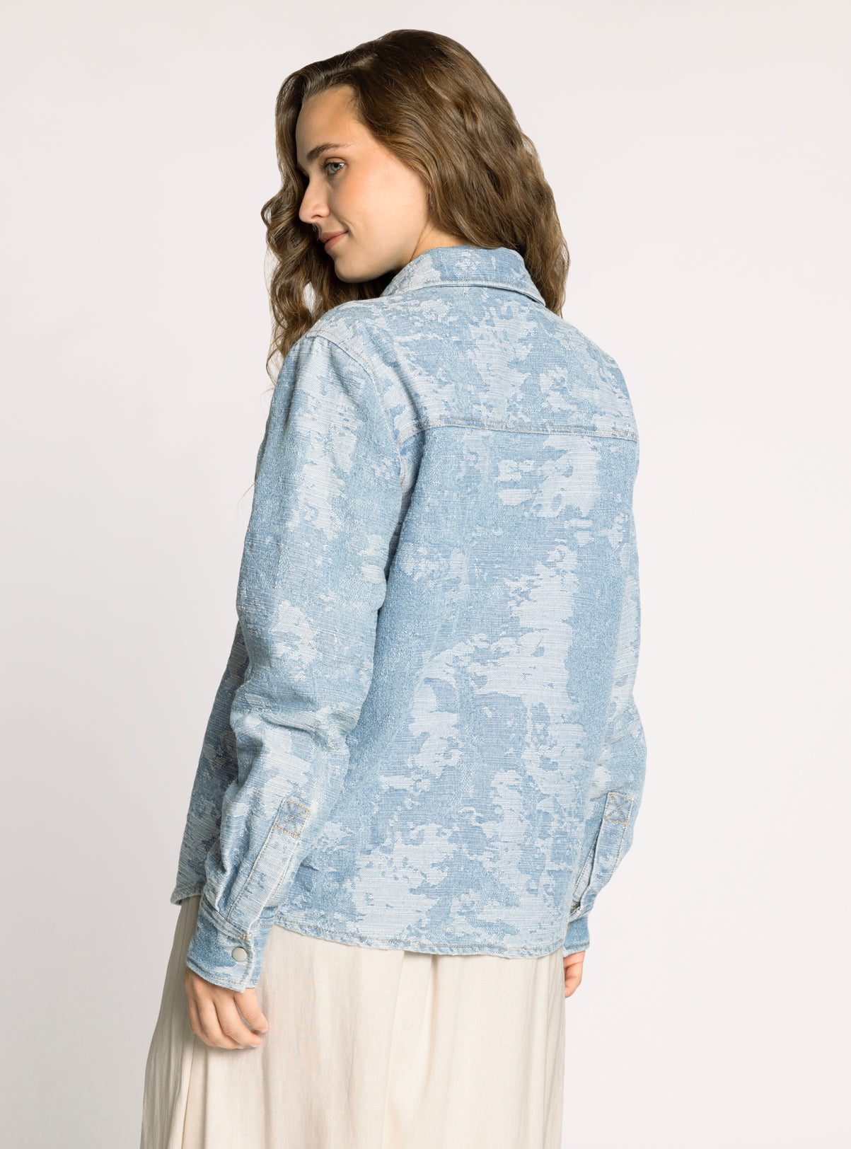 Upgrade your denim jacket collection with this so cool version, featuring a printed burnout design with snap front closure and dual chest pockets.