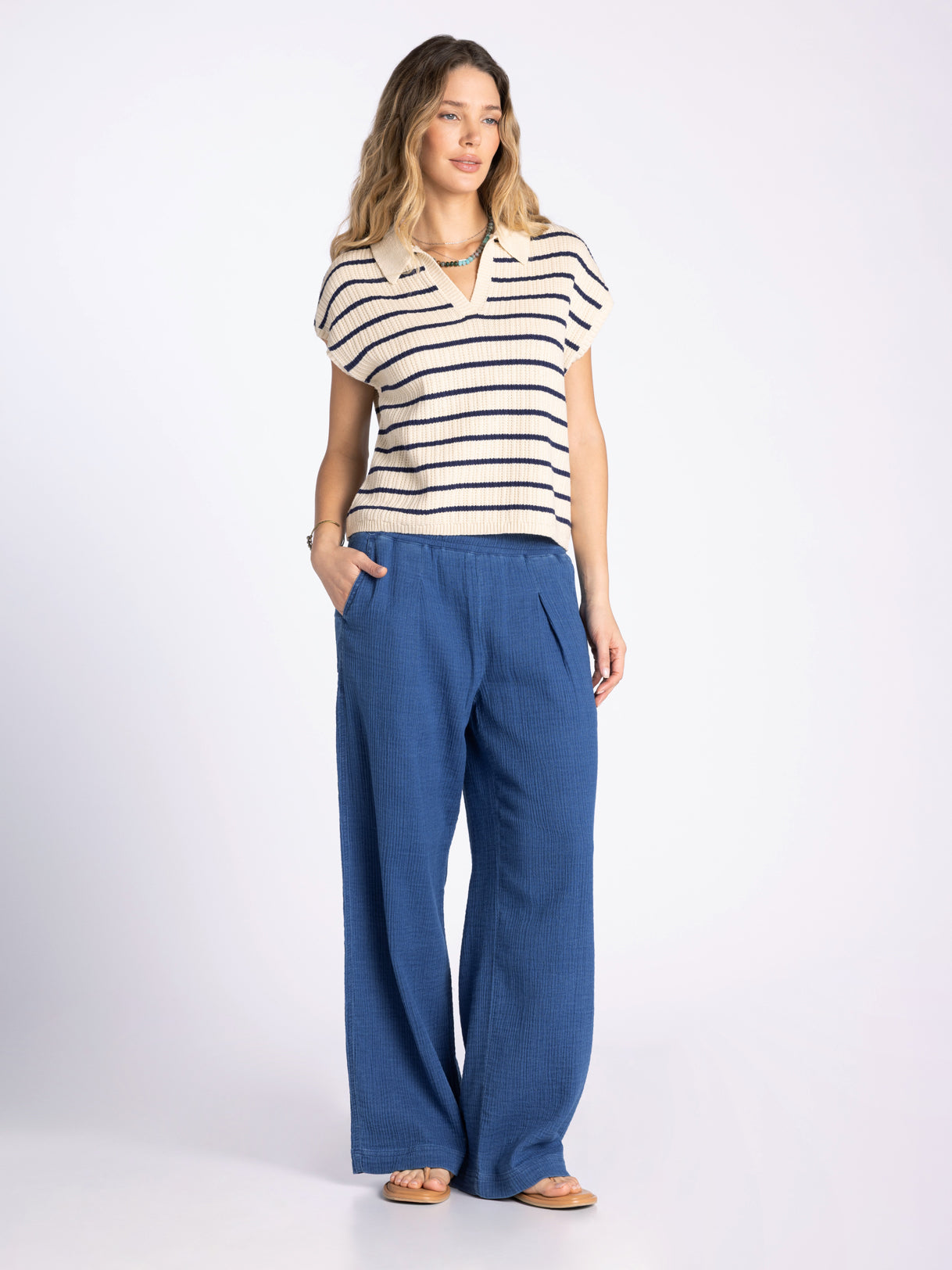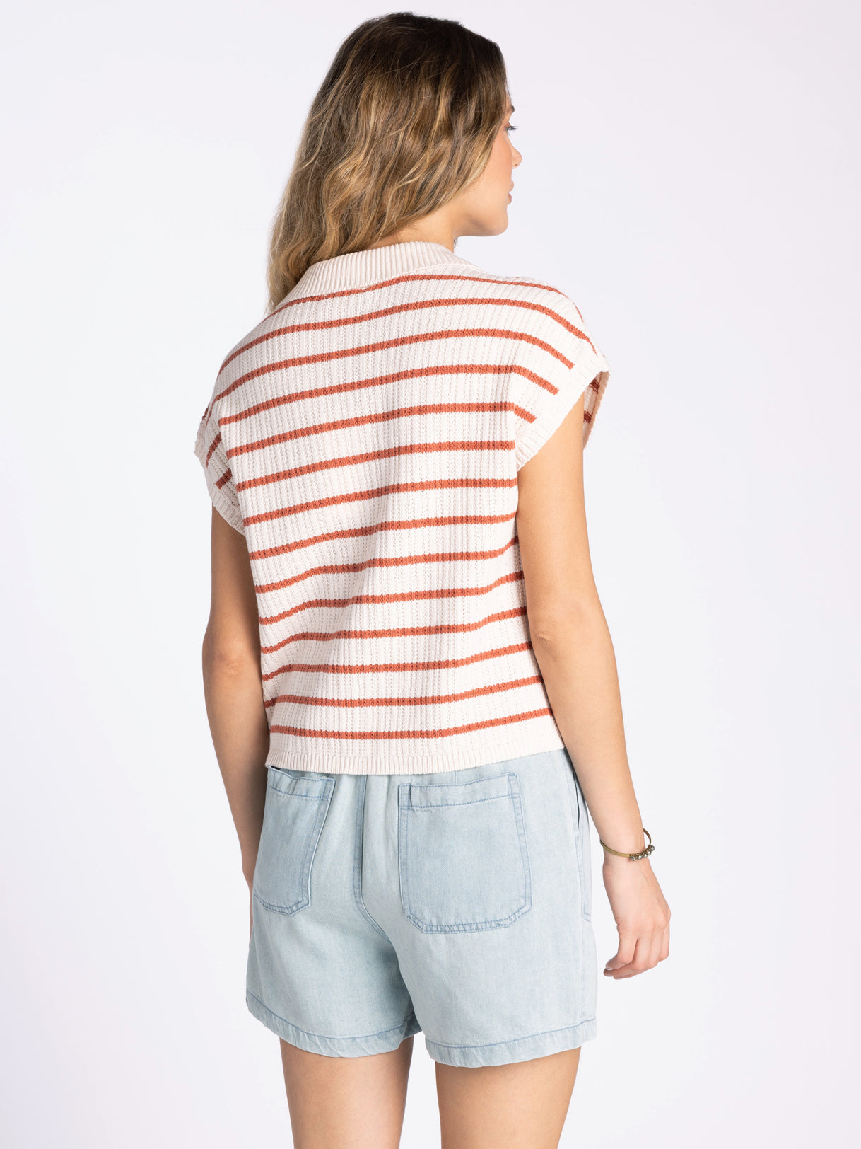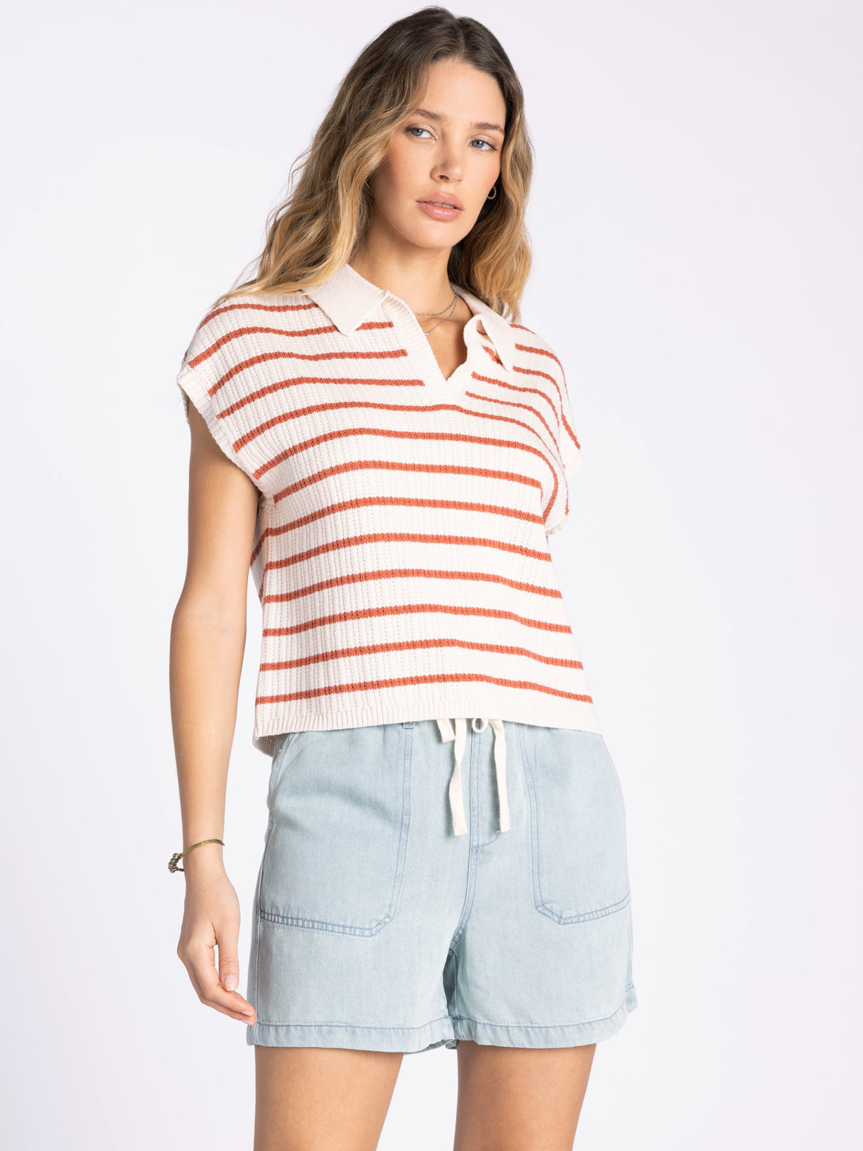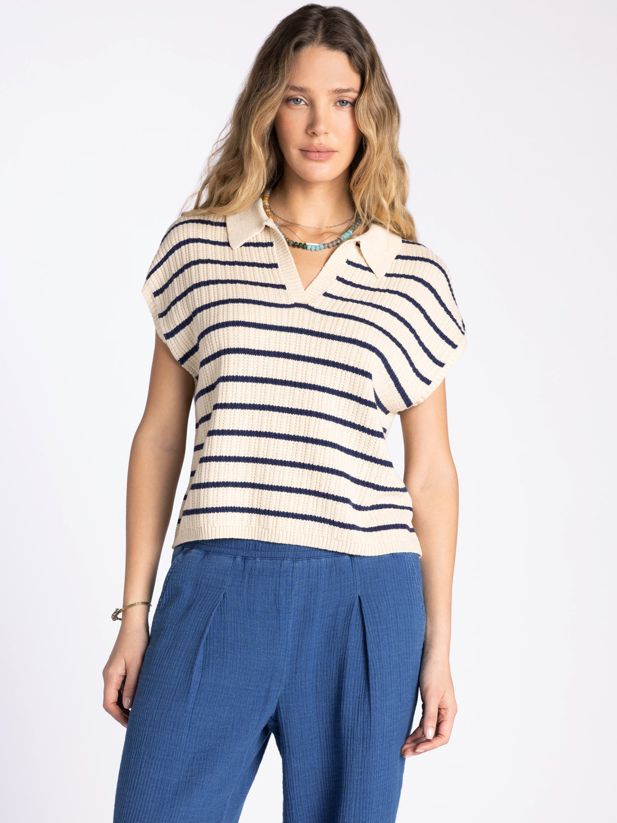 Cute and classic, this knit collared tee is featured in a relaxed fabrication with short capped sleeves.