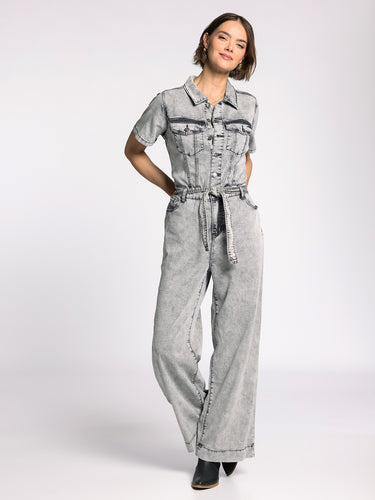 Your easiest done-in-one yet, this jumpsuit deserves a spot in every denim drawer. Featuring a tie waist, dual side pockets and relaxed, wide leg fit.
