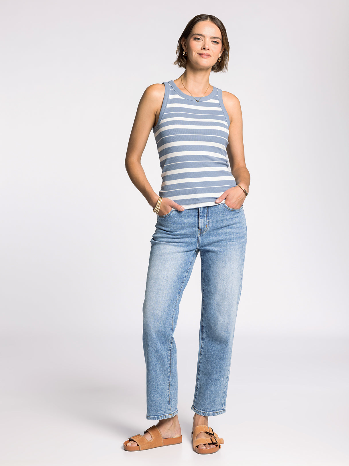 Forever timeless in our soft micro ribbed Edlin Tank. Crafted in a buttery cotton blend fabrication, this tank is a wear-everywhere kind of essential.