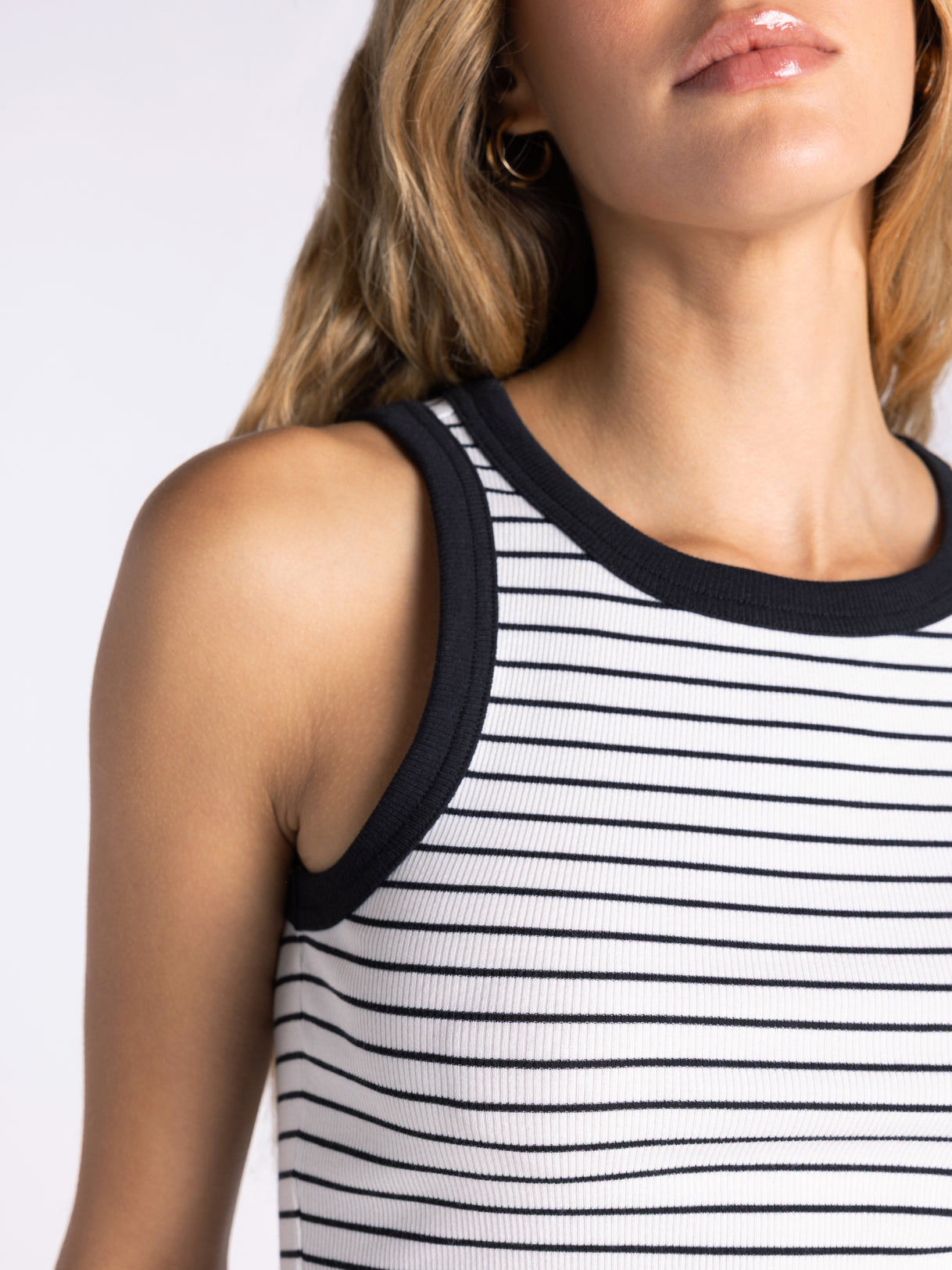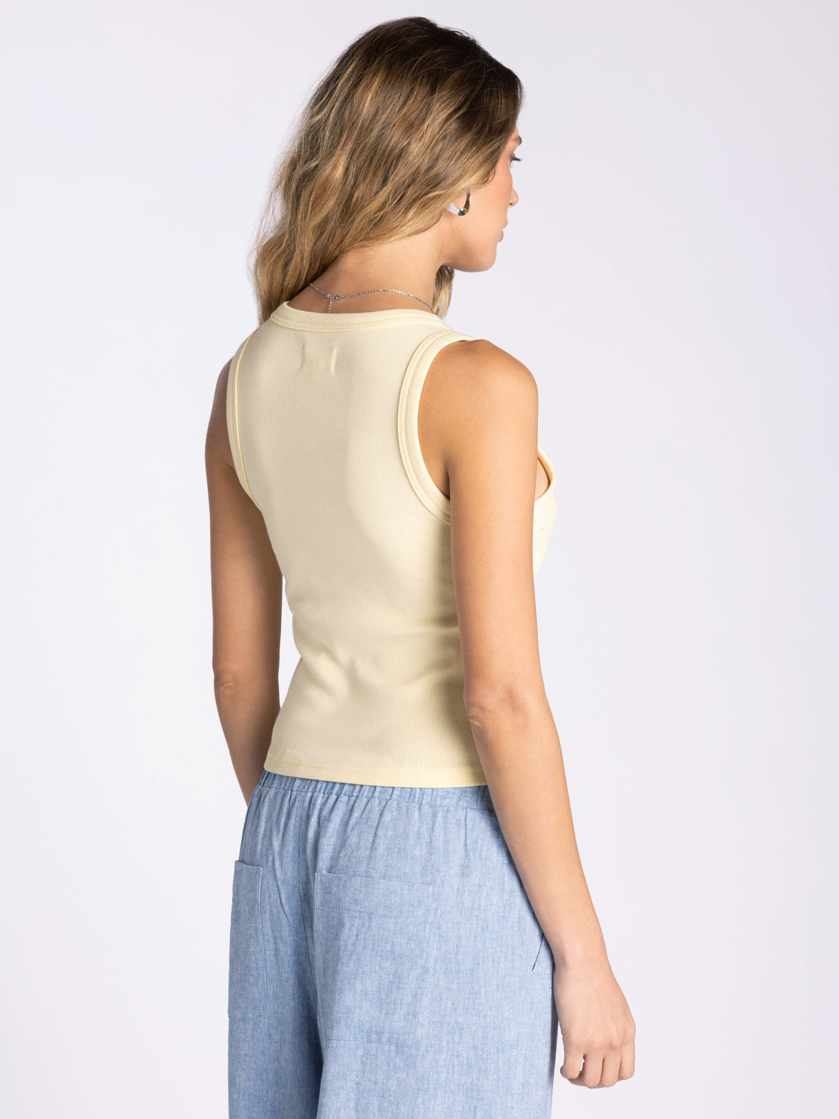 Your new favorite timeless tank, featured in a soft, ribbed knit fabrication and slim-fitting silhouette with a crew neckline and slightly cropped silhouette.