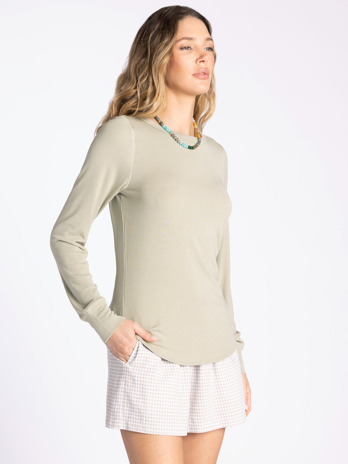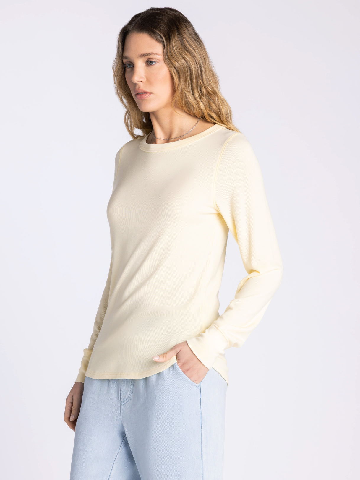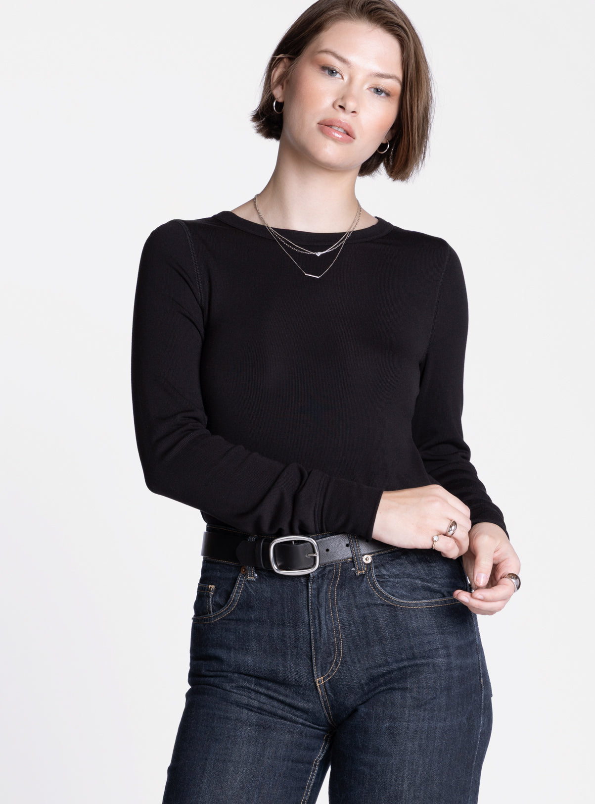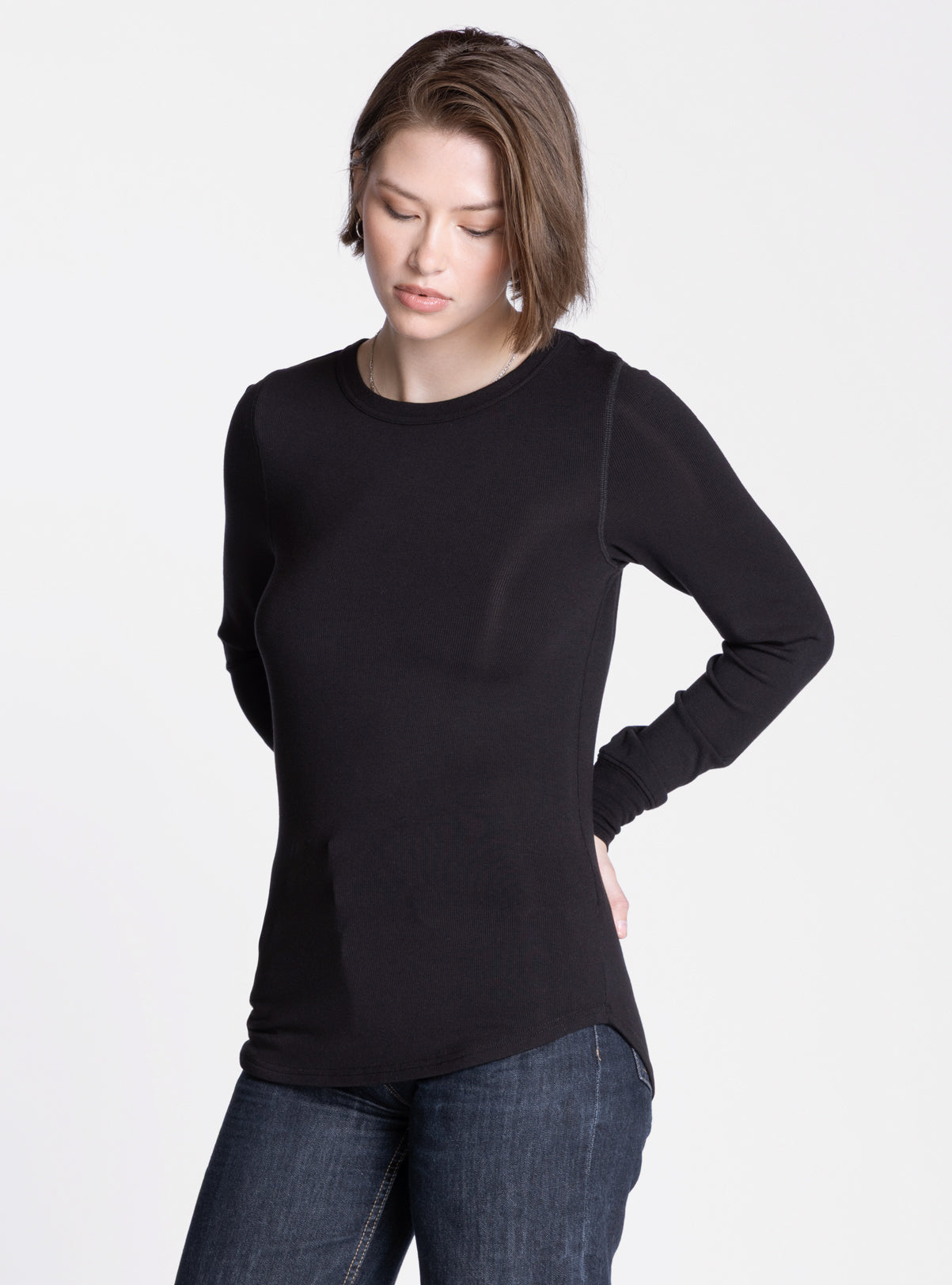 One of our favorite long sleeve tees, this easy crew neck is made of our lightweight micro modal fabric for all day comfort. With its relaxed shirt tail hem, this versatile tee is an essential for every closet.