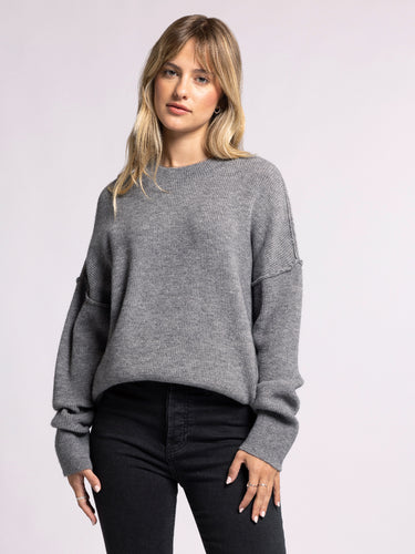 So comfy in cashmere, this sweater is featured in a cashmere blend fabrication with a relaxed fit drop shoulder silhouette and side slits.