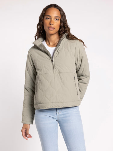 Perfectly versatile with its reversible fabric, light weight puffer meets cozy plush teddy. Featuring half zip closure, side pockets and mock neck.