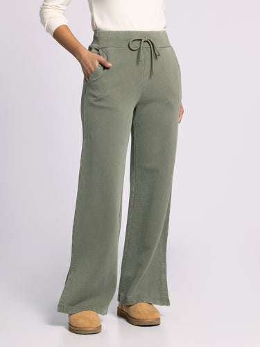 We’re living in these comfy cotton lounge pants, featured in a flared silhouette with side slits and an elastic waistband for endless wear in or out of the house. Wear with the Ariel Top to complete the set.