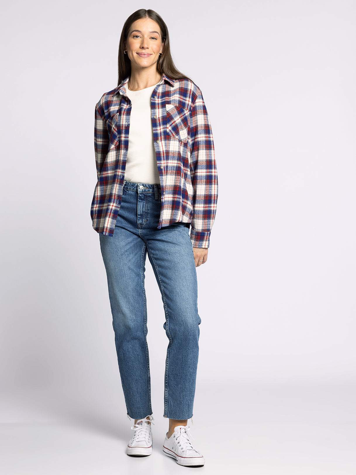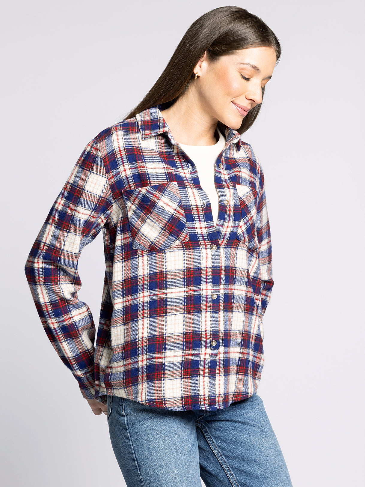The perfect plaid, this button up features a classic relaxed silhouette, timeless plaid print, a soft cotton fabrication, and side pockets for an extra touch of detail.