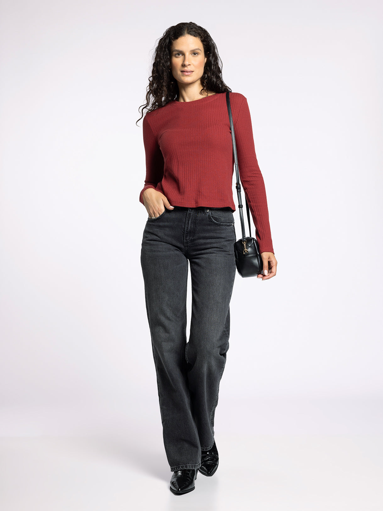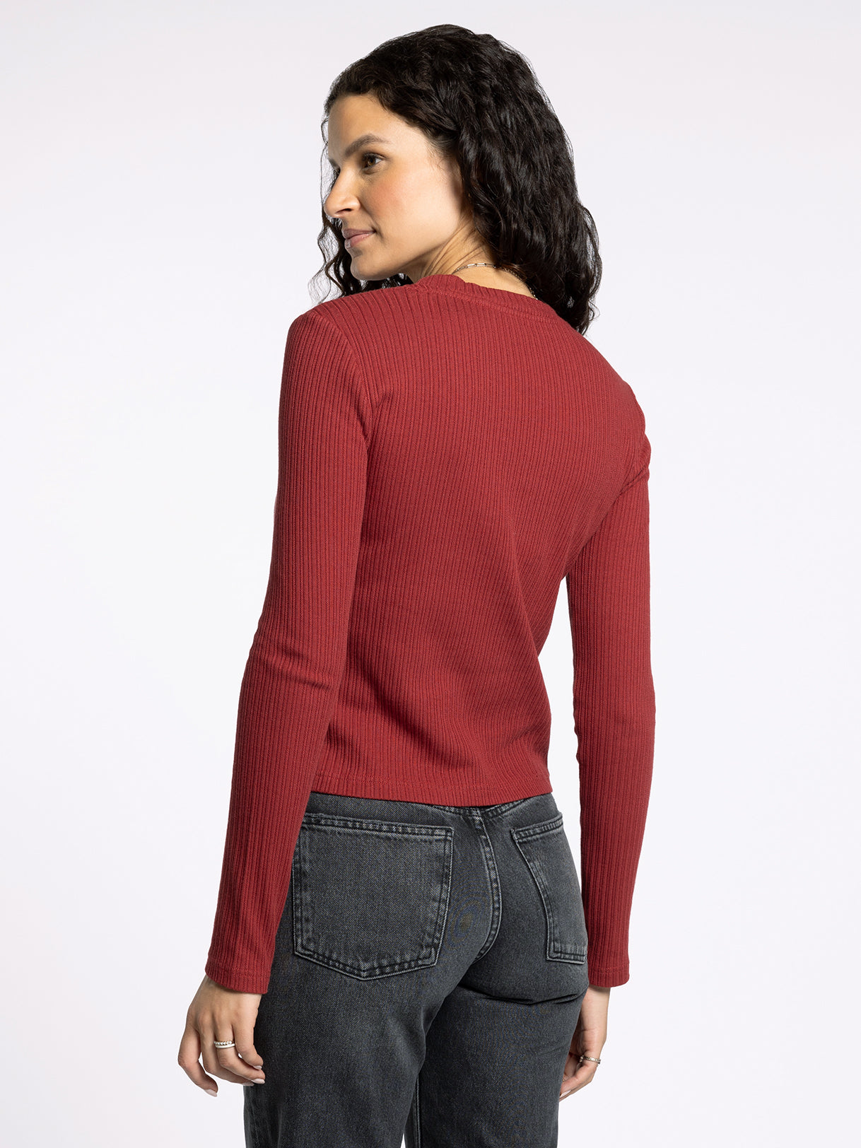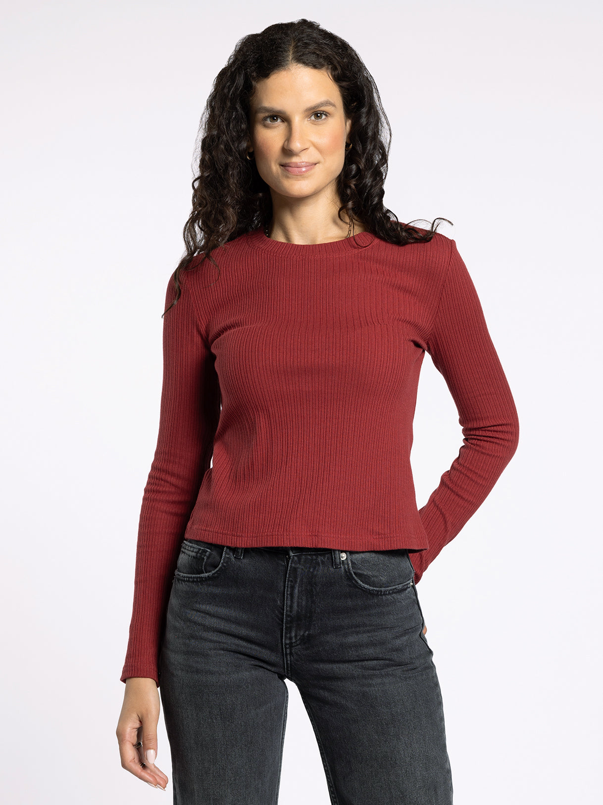An elevated take on the classic tee, this long-sleeve features a ribbed fabrication and slim silhouette with raised rib detailing and a crew-neckline.
